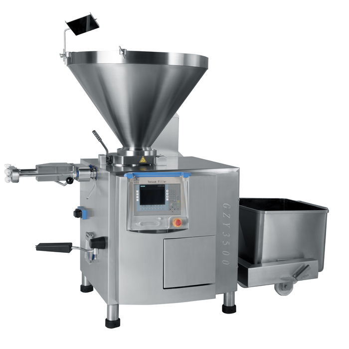 本機專門用于在食品工業加工中,灌裝食品、將食品分段和扭結。適用于灌制各種火腿及火腿腸類相關產品,安裝扭結機構可灌制臺烤、親親腸、天然腸衣產品。