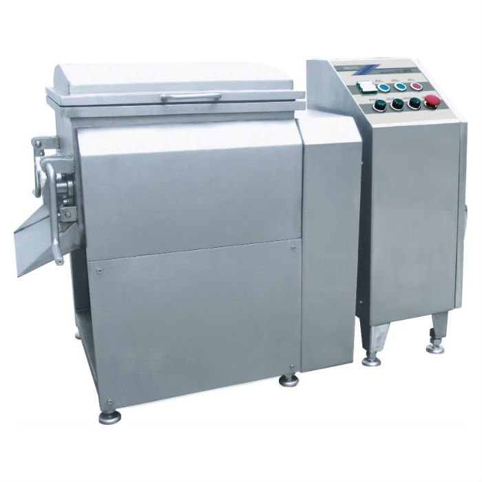真空攪拌機(jī)是在原普通攪拌機(jī)的基礎(chǔ)上引進(jìn)國際技術(shù)水平而改進(jìn)的新型攪拌機(jī)。在真空的狀態(tài)下,物料被負(fù)壓后膨脹同時(shí)被槳葉進(jìn)行徑向翻滾、軸向回流,完成混合均勻的攪拌功能,達(dá)到理想的攪拌效果,同時(shí)采用獨(dú)特的攪拌器,使拌出的肉餡纖維細(xì)化,并使肉纖維間的動(dòng)物蛋白能游離析出,以保證肉餡拌和均勻并使之呈現(xiàn)蓬松狀態(tài),加入的調(diào)味汁液能充分吸收飽和,以保持餡料的松、鮮、嫩、口感味道優(yōu)異的特點(diǎn)。同時(shí)也是各類速凍水餃、包子、混沌等面食加工廠的理想設(shè)備。