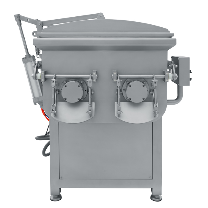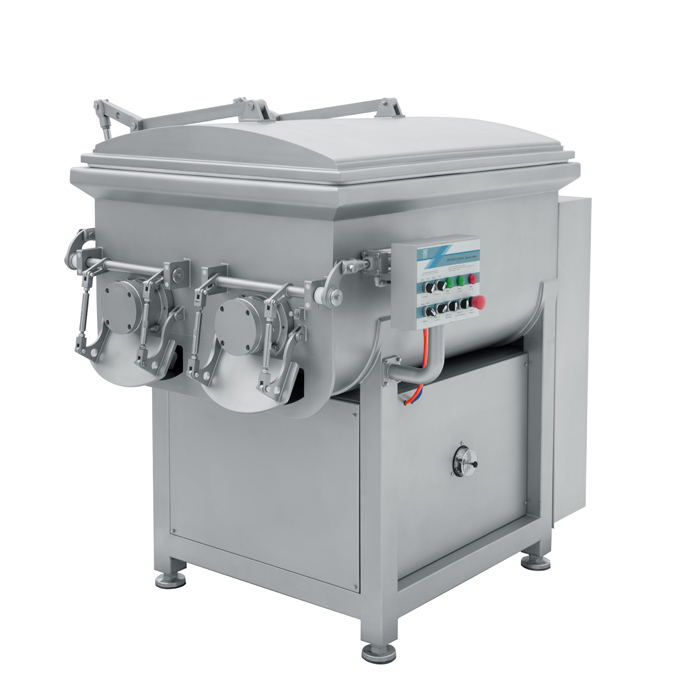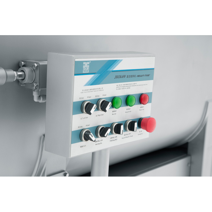 JBZK650真空攪拌機,在真空的狀態下,物料被負壓后膨脹同時被槳葉進行徑向翻滾、軸向回流,完成混合均勻的攪拌功能,達到理想的攪拌效果,同時采用獨特的攪拌器,使拌出的肉餡纖維細化,并使肉纖維間的動物蛋白能游離析出,以保證肉餡拌和均勻并使之呈現蓬松狀態,加入的調味汁液能充分吸收飽和,以保持餡料的松、鮮、嫩、口感味道優異的特點。是肉類生產中常用的設備之一,同時也是各類速凍水餃、包子、混沌等面食加工廠的理想設備。
