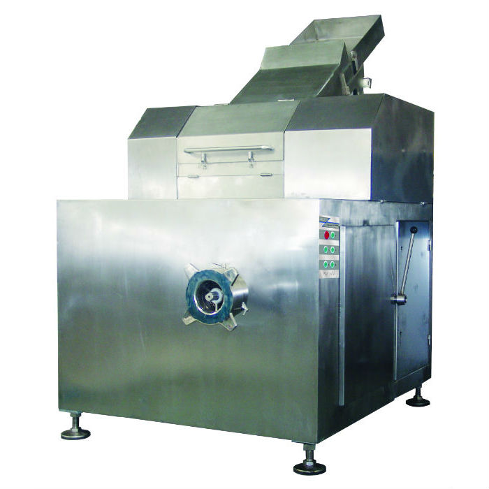結構:進料系統、切塊系統、送料系統和絞肉系統。在切塊和絞肉系統中間有強磁系統以防有鐵質材料進入絞肉機系統。