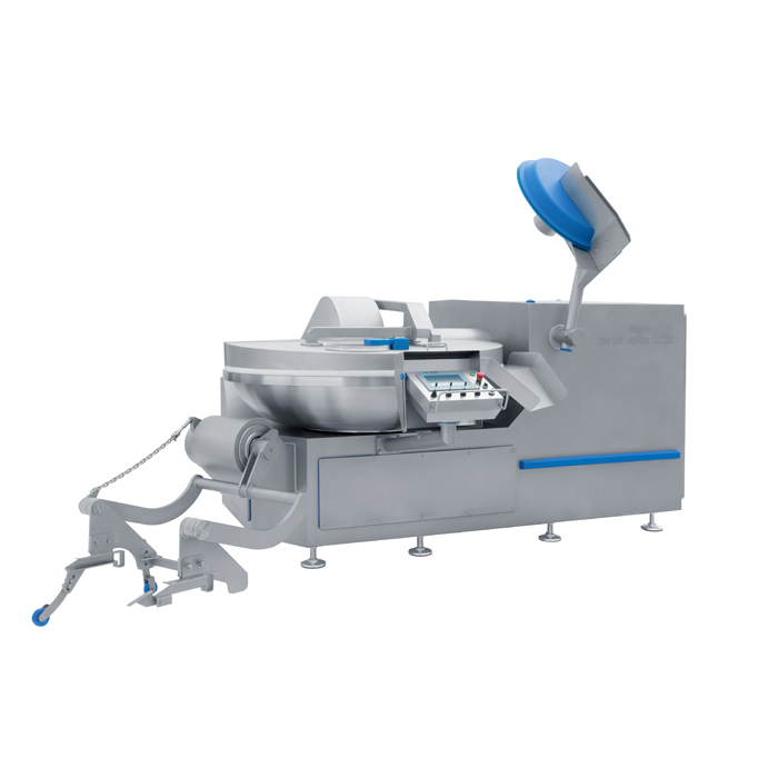5、 斬刀為6把刀(可以裝8把刀),刀具由專業刀具生產廠定制。刀的形狀為流線形。斬切細度好、升溫程度小、斬拌時間短,提高了肉制品的乳化效果、彈性、細膩度及出品率。