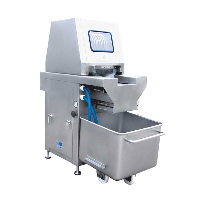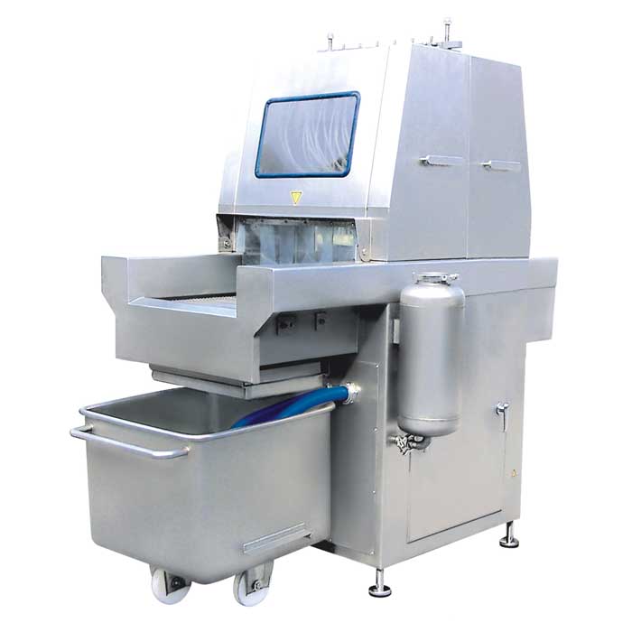 ◇ 可帶骨注射(設有自動保護裝置,當注射針碰到硬物時,注射針隨之抬起,不受損壞;注射針可方便調節安裝)。注射針設計獨特、排列合理,料水可均勻分布在肉塊中,注射率可調。