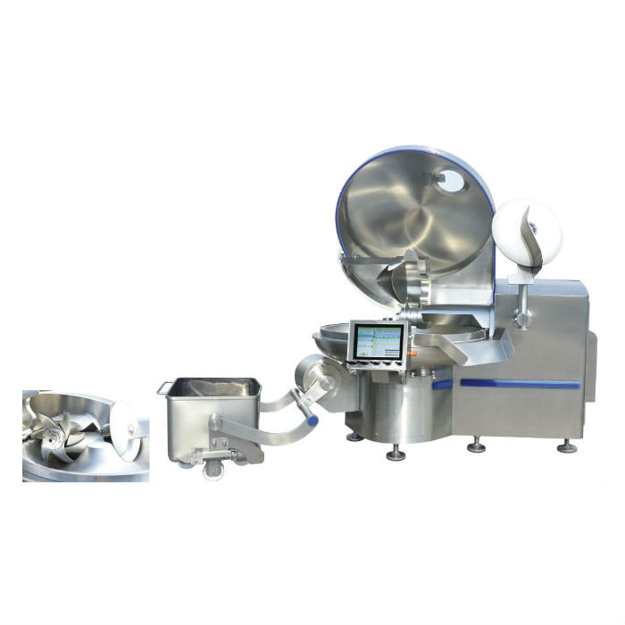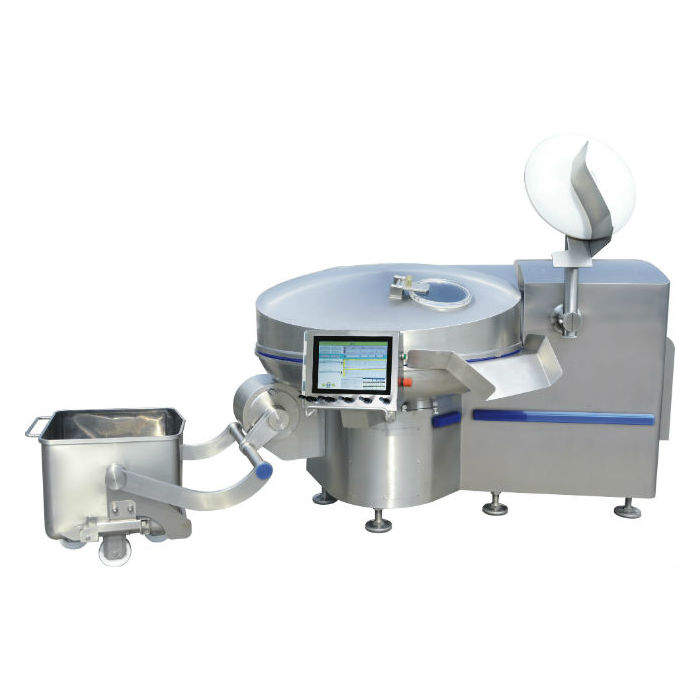利用斬刀高速旋轉(zhuǎn)的斬切作用,將肉塊、碎肉、脂肪等主要原料精細(xì)的斬切成肉餡或肉泥,同時將其它原料如水,冰片,輔料一起攪拌均勻。